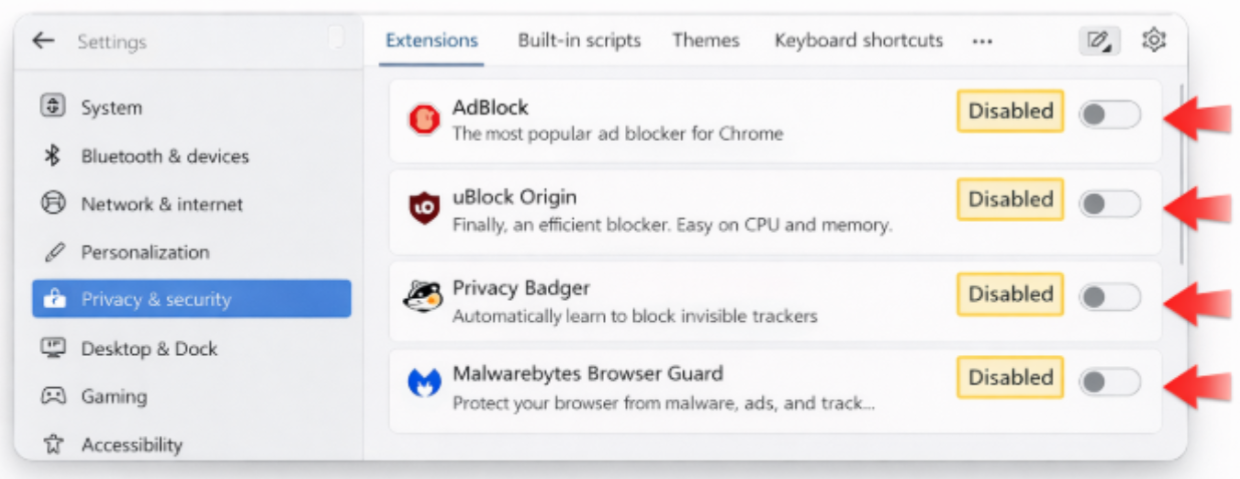 Third-party extensions interfering