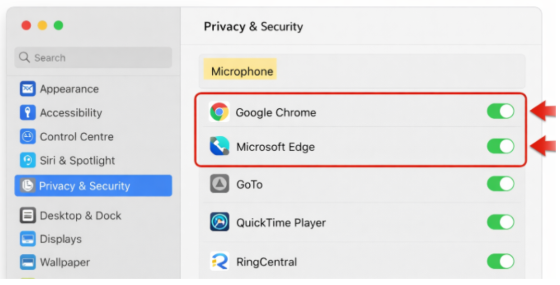 Go to System Settings > Privacy & Security > Microphone.