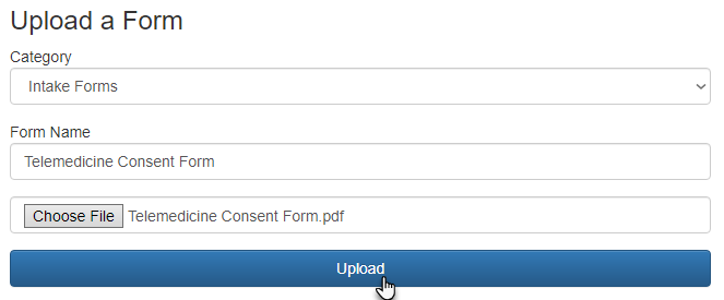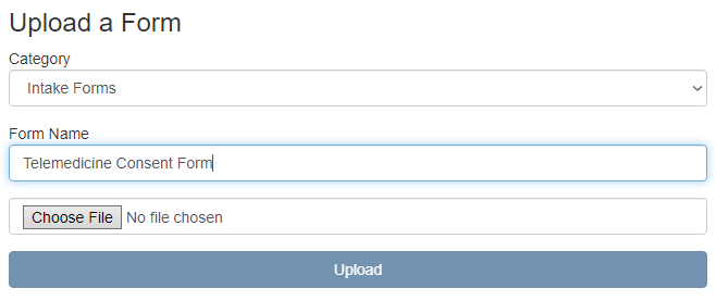 This Knowledge Base article will guide ICANotes customers through the workflow of uploading telehealth forms to the Upload Site to make them visible to patients via the Premium Patient Portal. For more details on adding portal-enabled patient signature forms, see this KB article.