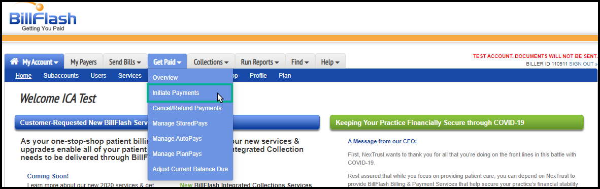 ICANotes users with the BillFlash integration may now collect credit card payments via BillFlash within the ICANotes program. This functionality will work with the following types of payment collection: Copay collected via credit card through the ...