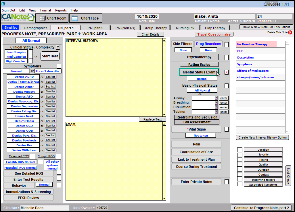 From the Prescriber Progress Note: Click the 'Mental Status Exam' button.