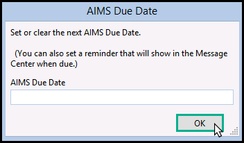 G. The Set Due Date button allows you to apply a date when the AIMS Exam is next due. Enter the date and click OK.