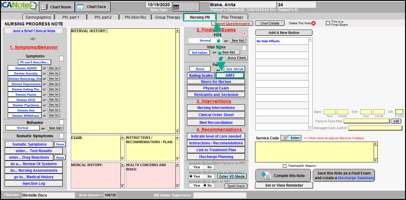 From the Nursing Note: The AIMS Scale has a dedicated button.
