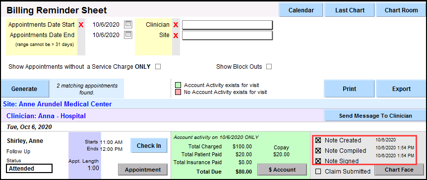 15. Once the provider has completed the notes for the day as evidenced by the checkboxes to the far right, Note Created, Note Compiled, Note Signed (if available), then you can move to the next step to link the notes back to the charges.