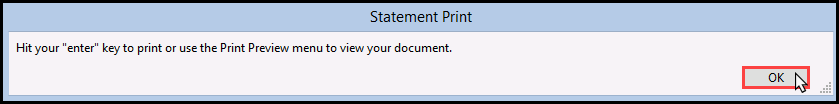 12. You will encounter an alert that you are entering a Print Preview and will need to click 'Enter' on your keyboard to continue.
