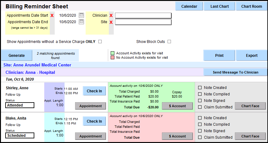 When a payment is posted on that date of service, it will turn green in this report. If no payment was posted on that date, it will remain pink.