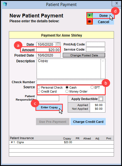 9. In the Patient Payment window: