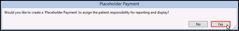 7. You will be prompted to decide if you want to create a Placeholder Payment. Click Yes.