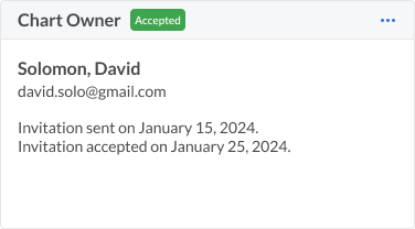 If the invitation has been sent and the client has accepted it, the Chart Owner box will display the Accepted tag, as depicted in the screen below. Upon clicking three dots, you will see the following options.