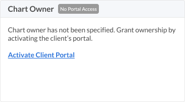 If the invitation to log in to the client portal has not yet been sent, the Chart Owner box will show the No Portal Access tag, as depicted in the screen below.