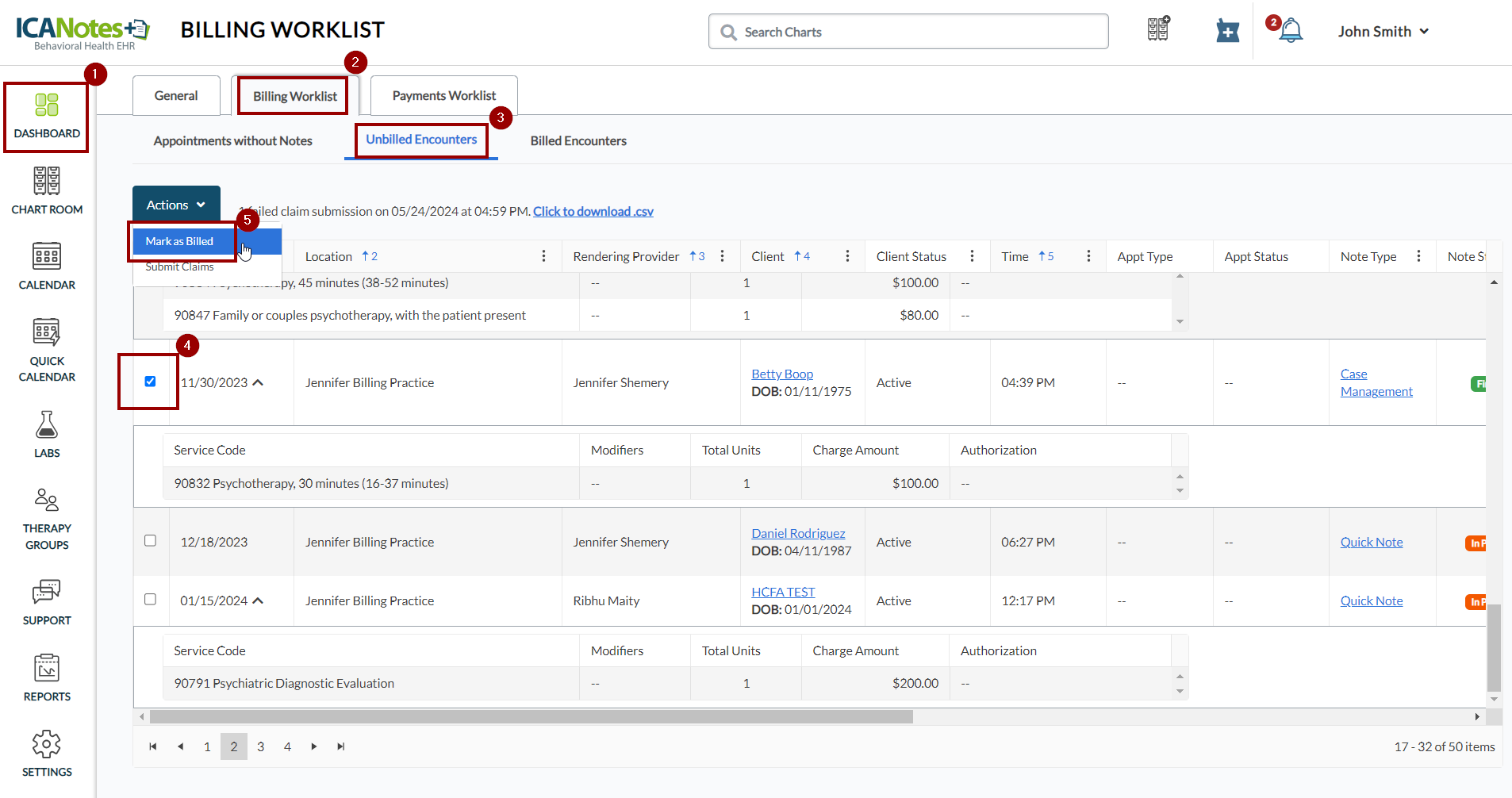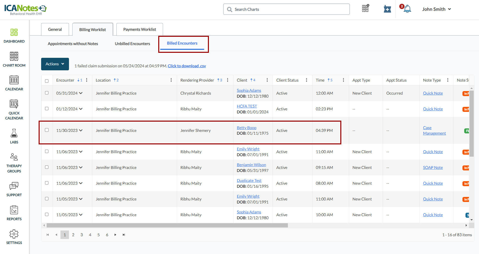 4. The encounter will appear in the Billed Encounters tab as shown below: