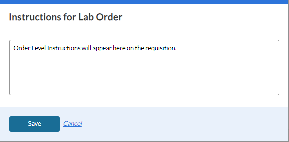 Clicking the Order Level Instructions button opens the following screen. Enter the desired instructions that you want to print on the requisition.