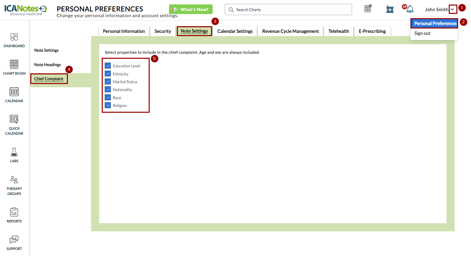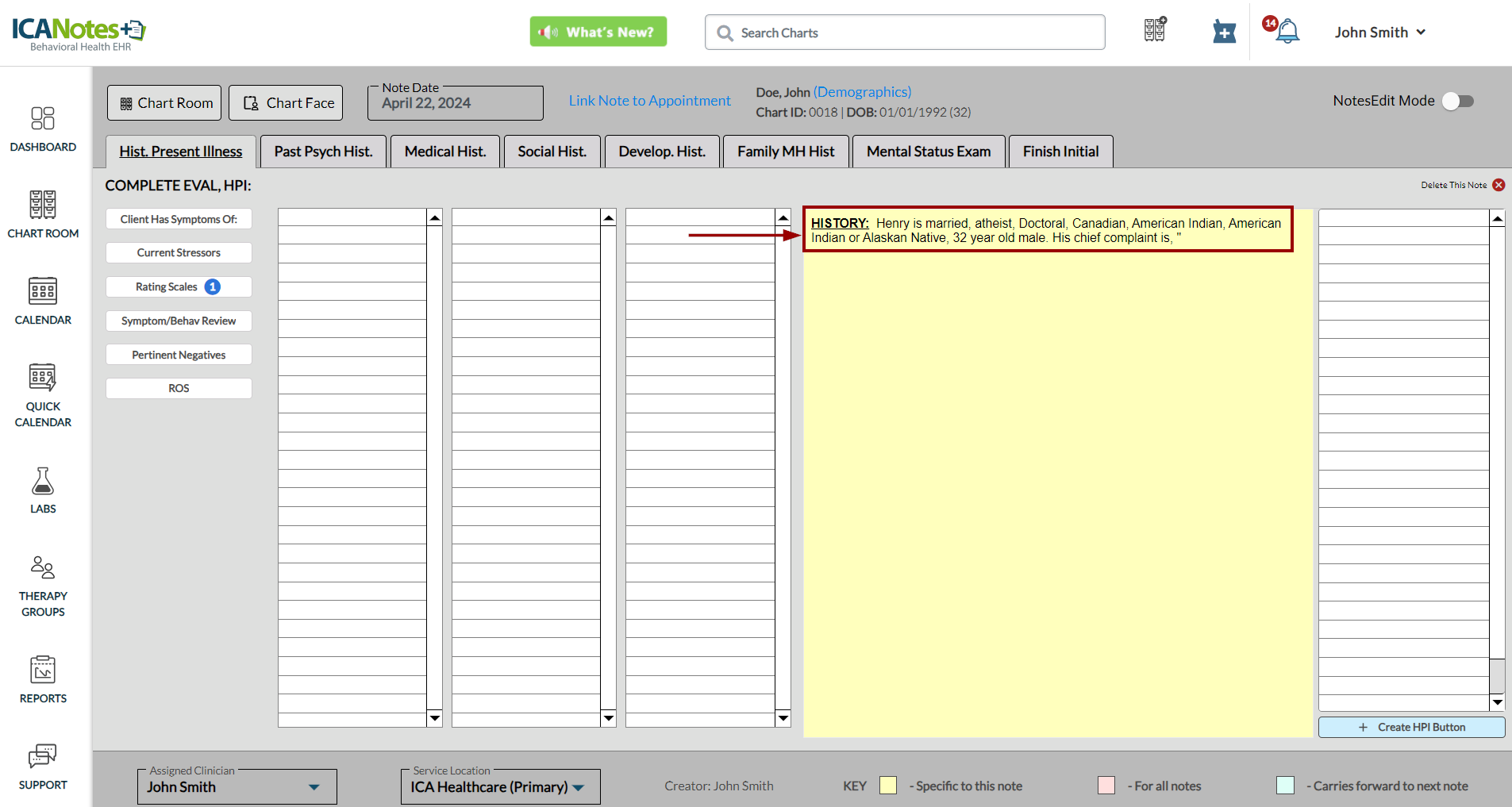 Note: The system has been enhanced to include the chief complaint properties on the note when utilizing the standard intake workflow via the client portal.