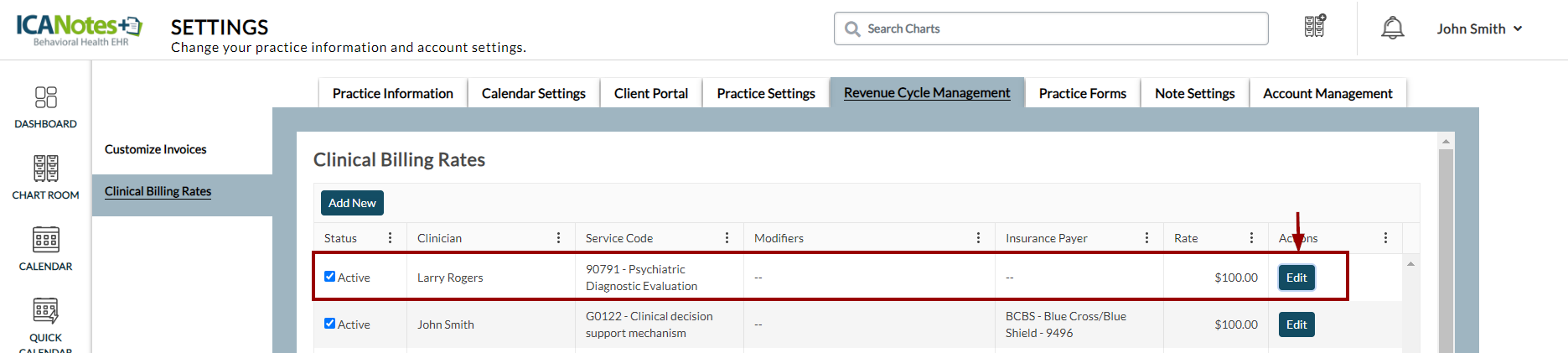 To set up billing rates for clinicians: