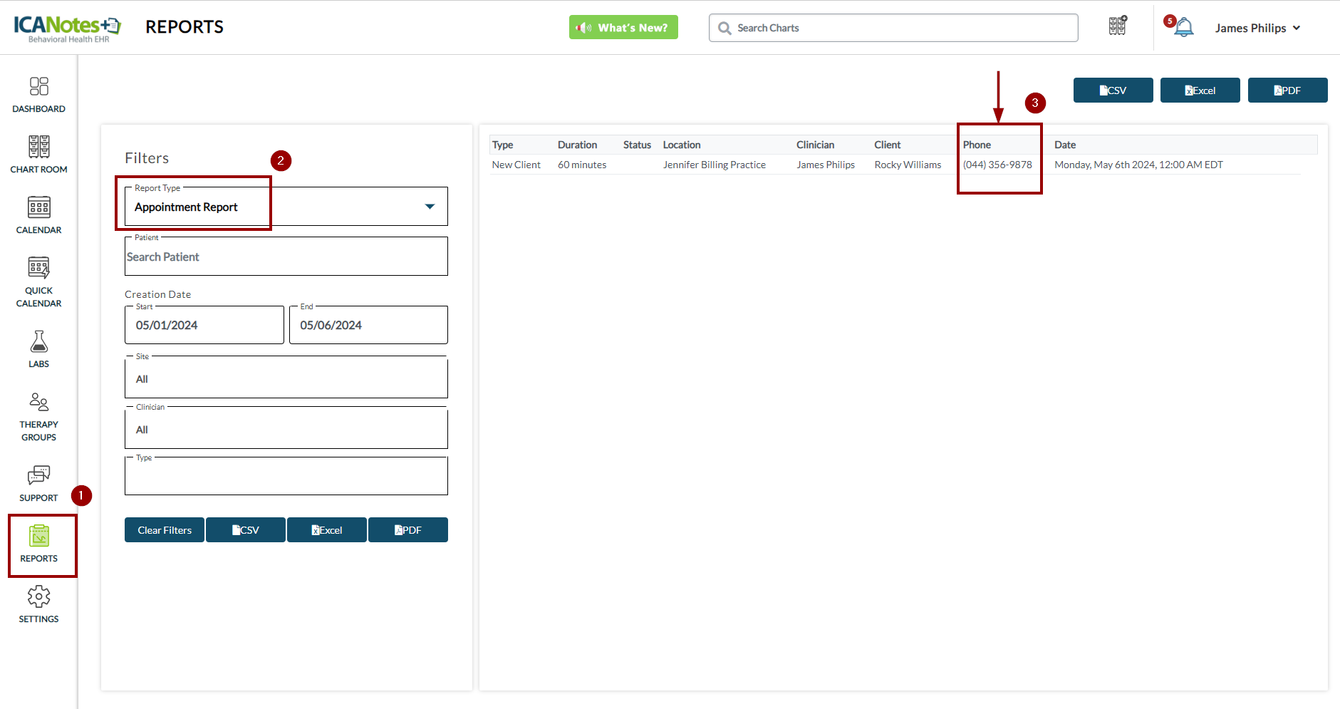 We have upgraded the Appointments Report to include the display of client's preferred phone number. Now, when viewing the report, you'll have access to this information at a glance. Furthermore, when exporting the report to PDF, Excel, or .csv formats, the client's phone number will also be included for comprehensive accessibility.