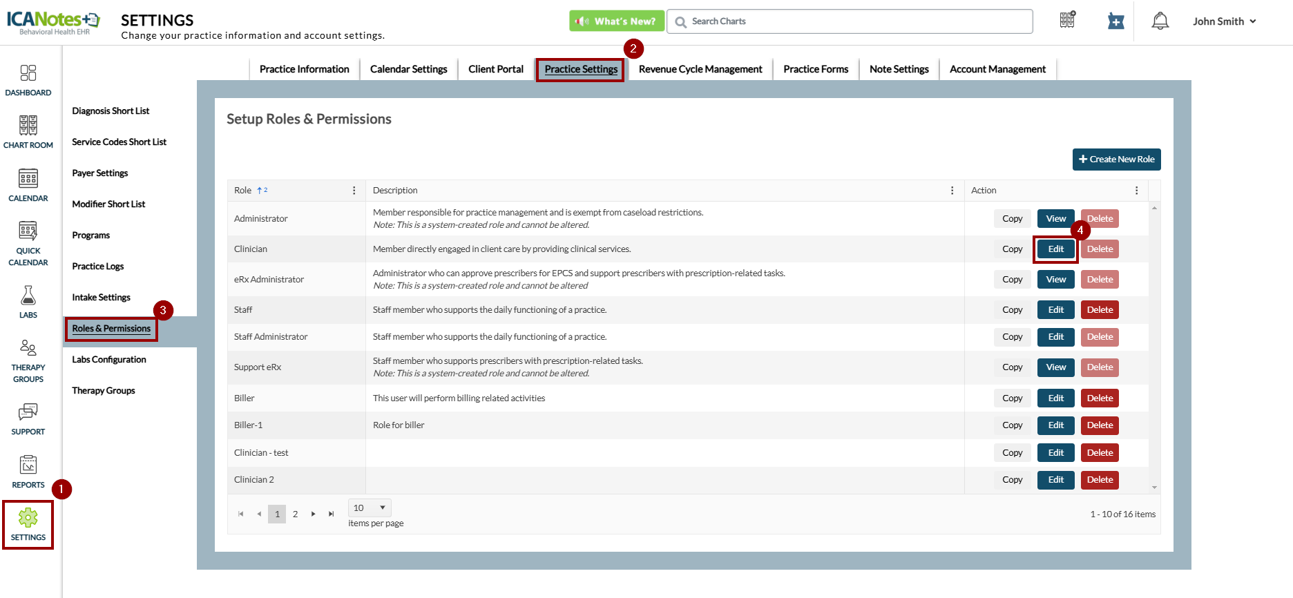 Navigate to Settings > Practice Settings > Roles & Permissions and edit the role.