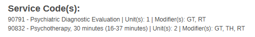 [Code] - [Description] | Unit(s): [#] | Modifier(s): [code, code]