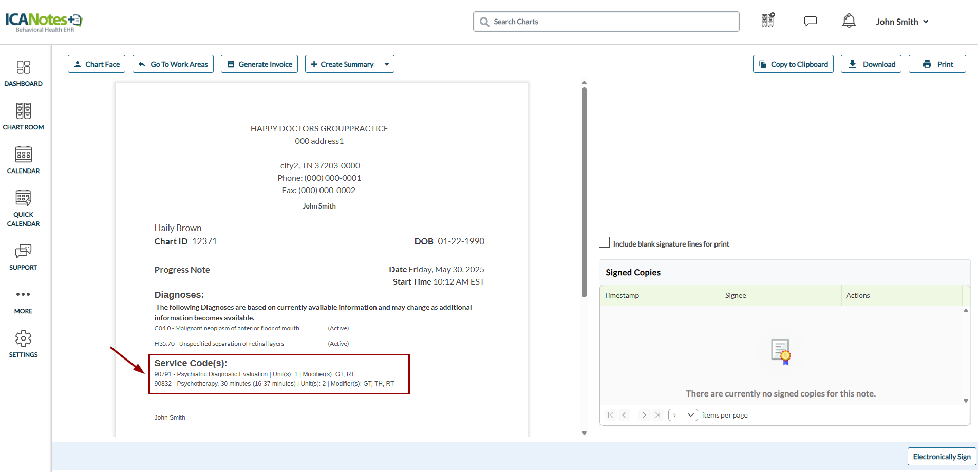 We enhanced how service codes display on compiled clinical note PDFs to improve clarity, consistency, and billing transparency.