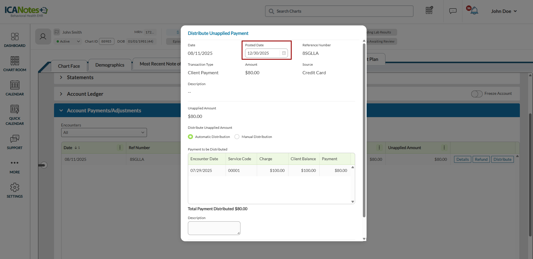 When distributing an unapplied client payment, the posting date now defaults to the date of distribution instead of the original collection date.