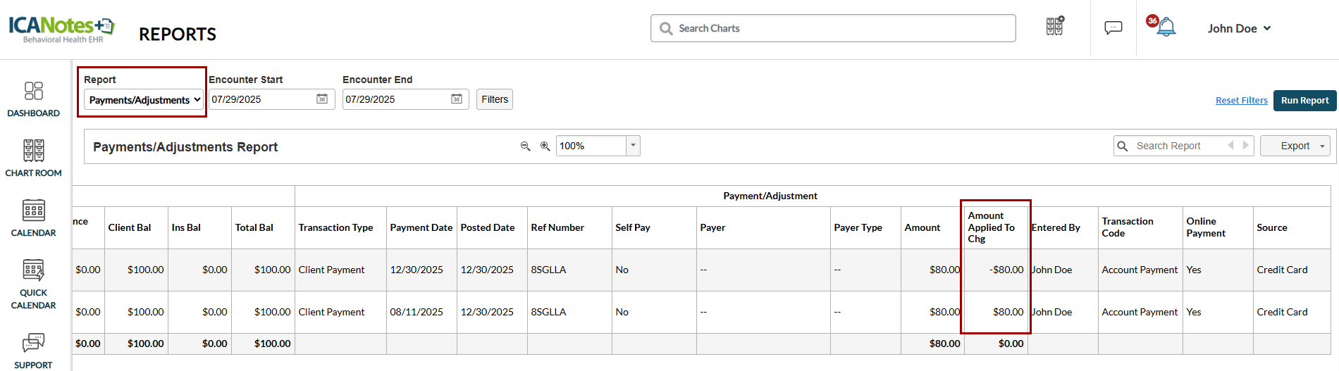 The Payments/Adjustments report now includes transactions created when previously applied payments are moved to Unapplied.