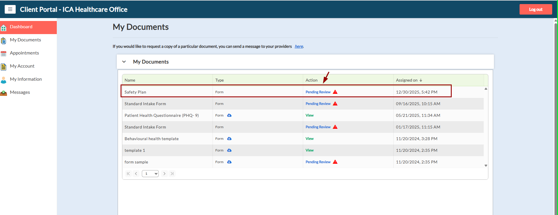 You can view, download, and electronically sign custom forms sent by your provider from the Client Portal.