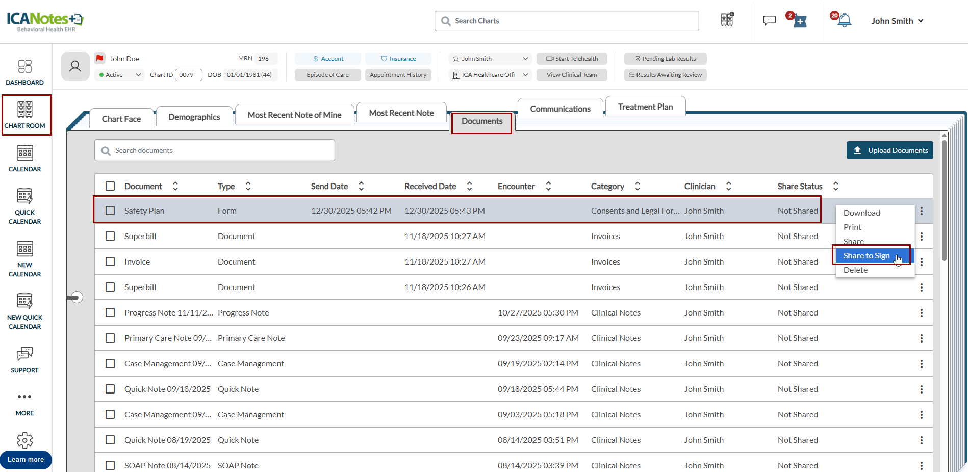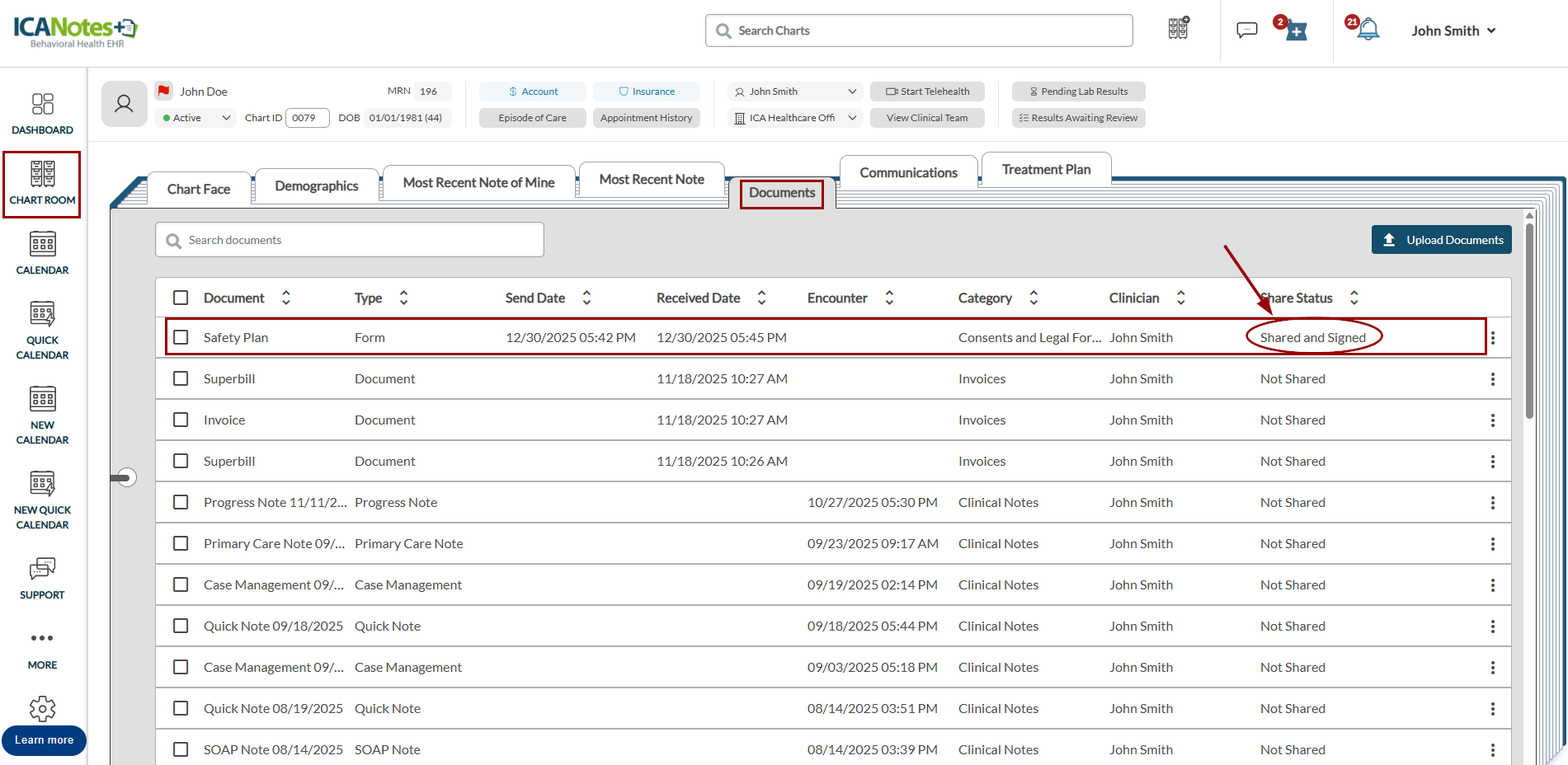 Updated or signed forms are also available in the Documents tab in ICANotes+.
