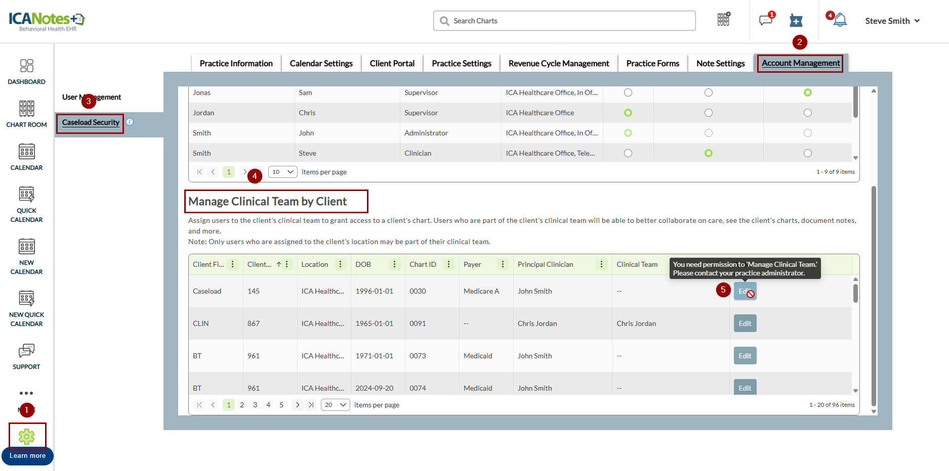 Clinical Team management under Account Management > Caseload (Screenshot shown below)