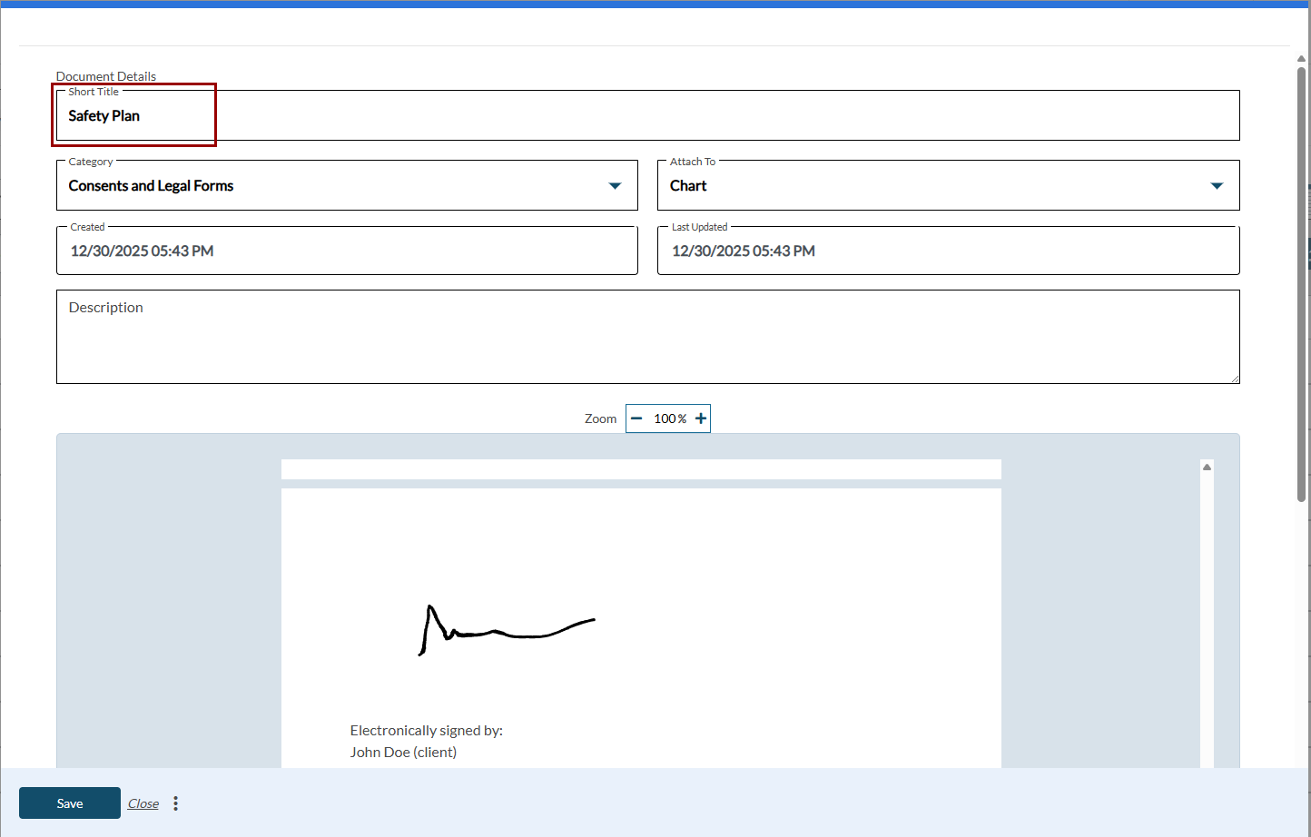 Clients and guardians can now electronically sign custom forms and assessments directly from the Client Portal that are shared by the clinician. This update makes it easier to complete required administrative and clinical paperwork securely before appointments.