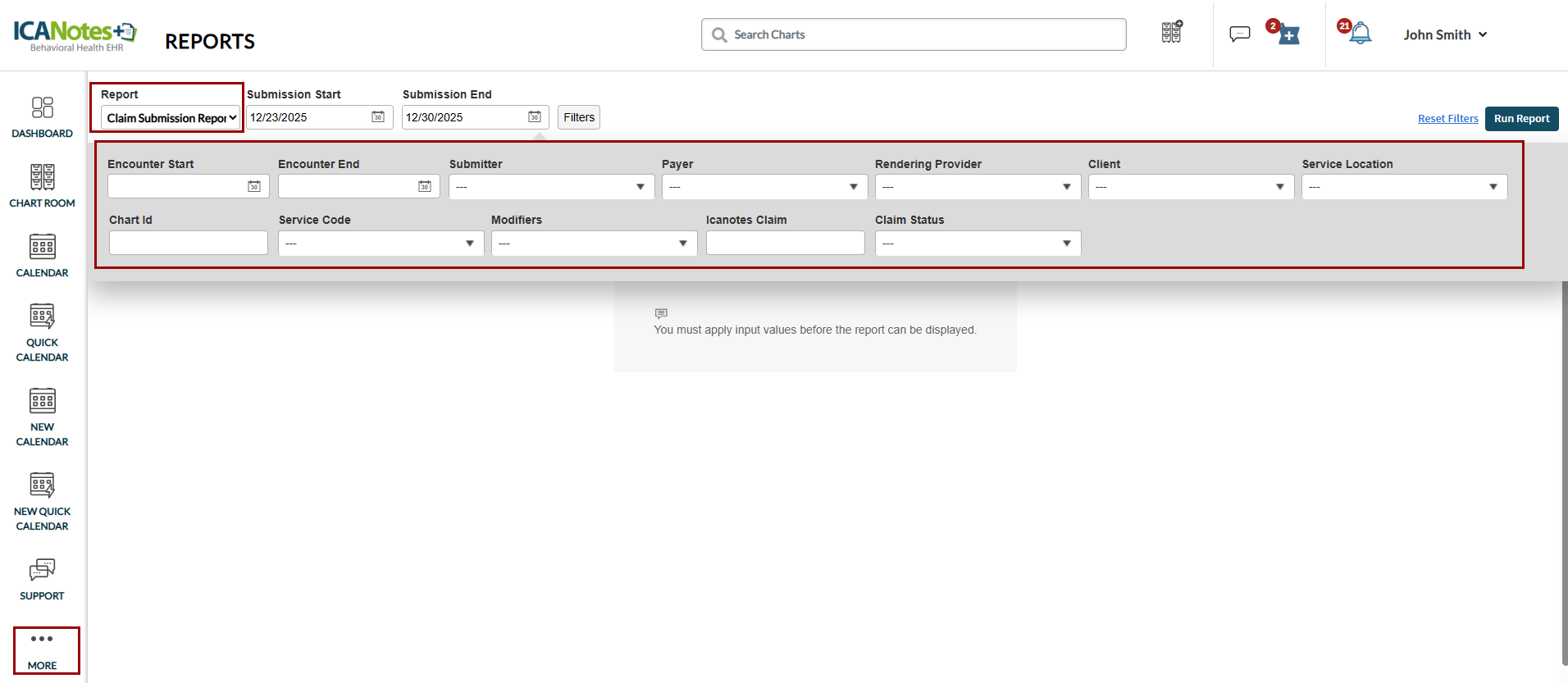 Chart ID: Filter claims using the associated client chart ID.